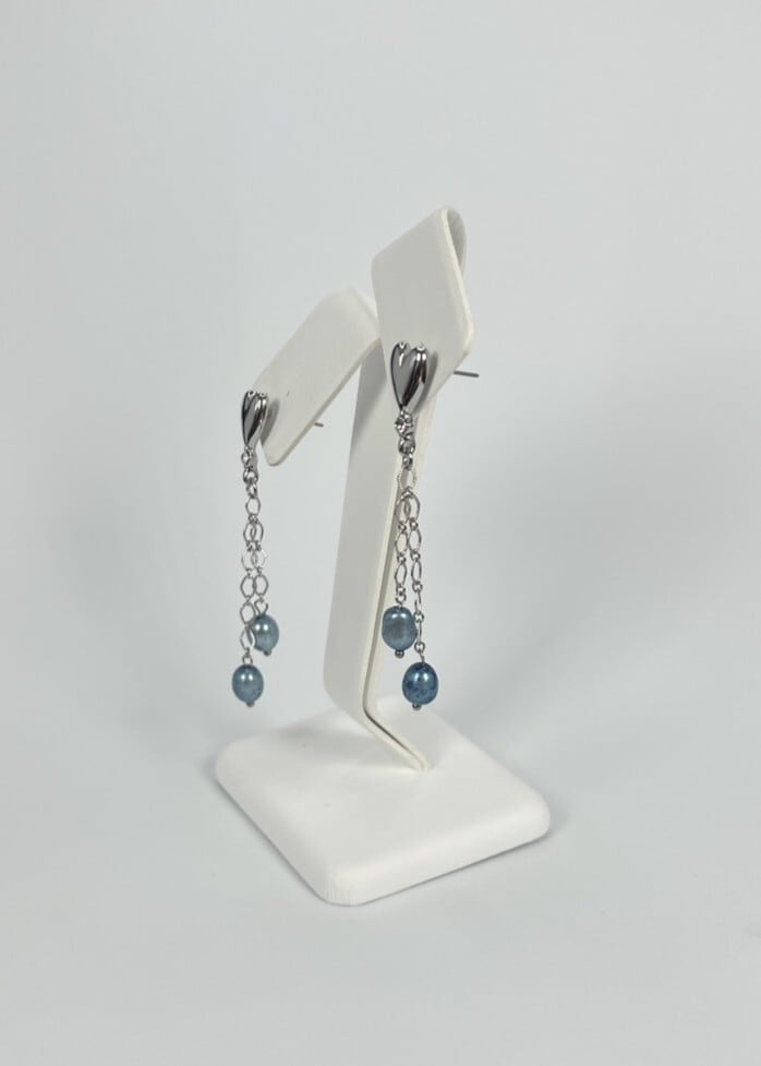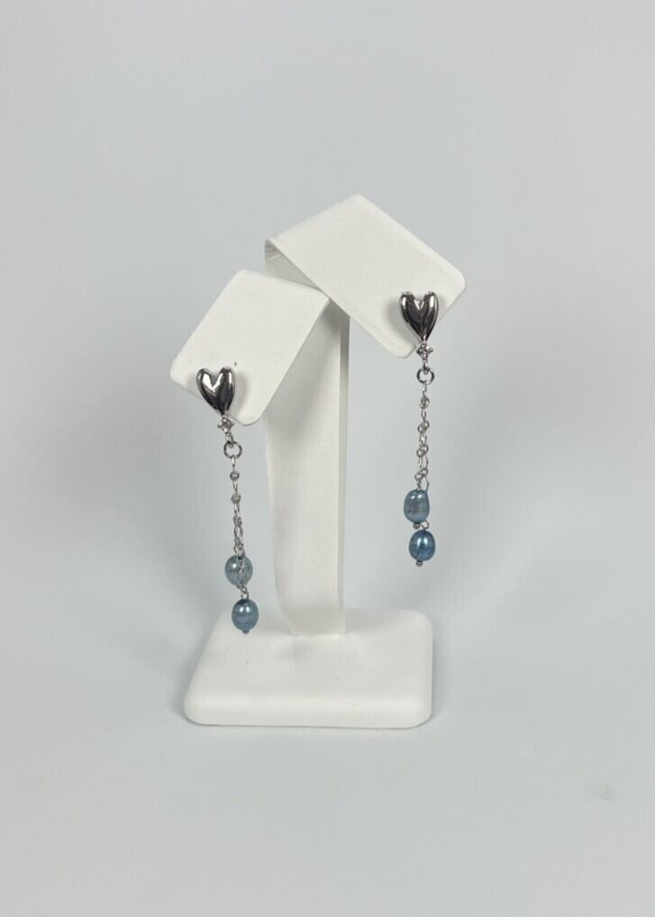 藍パール & ハート モチーフ ピアス