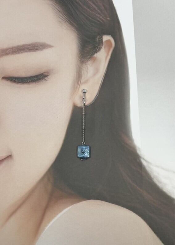 藍染 パール 四角 パール イヤリング ピアス に変更可能 ゆらゆら 揺れる ジュエリー jal84