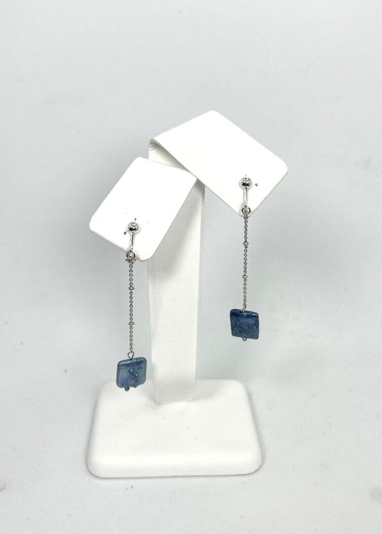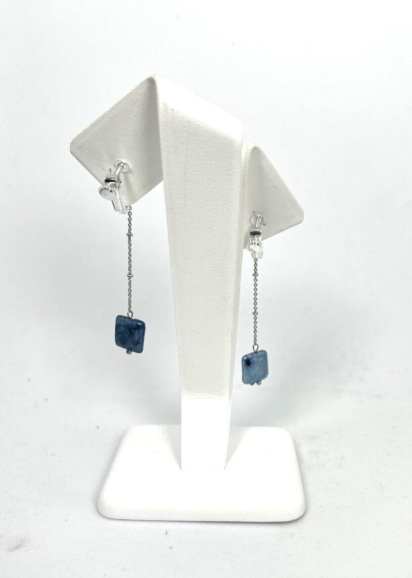 藍染 パール 四角 パール イヤリング ピアス に変更可能 ゆらゆら 揺れる ジュエリー jal85
