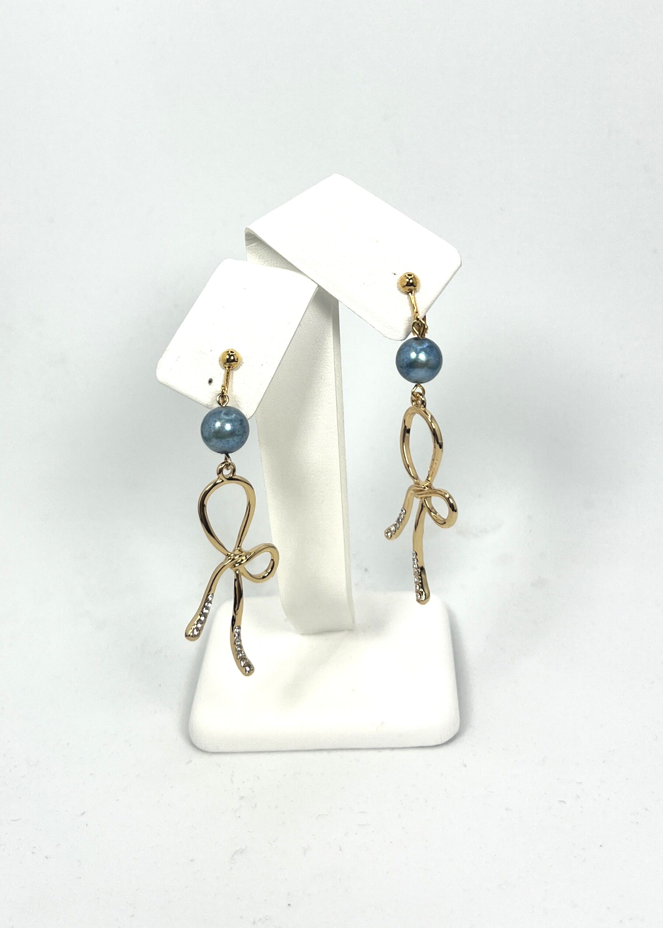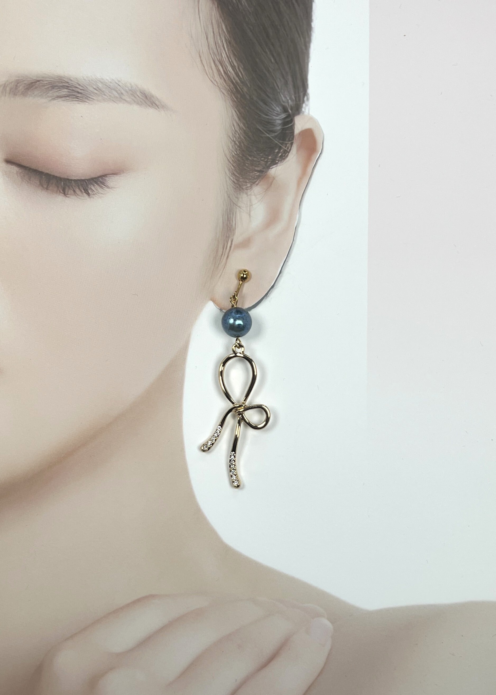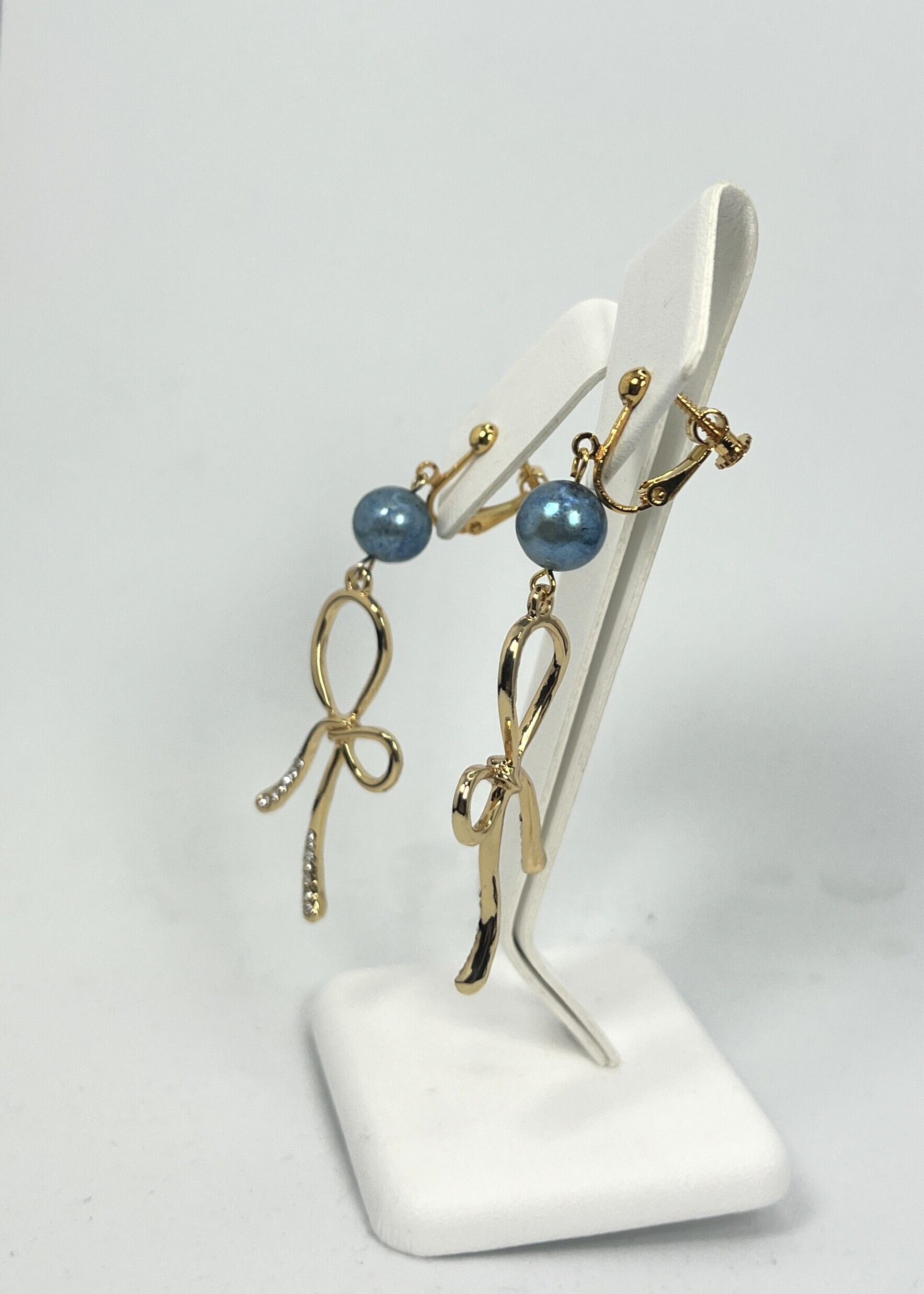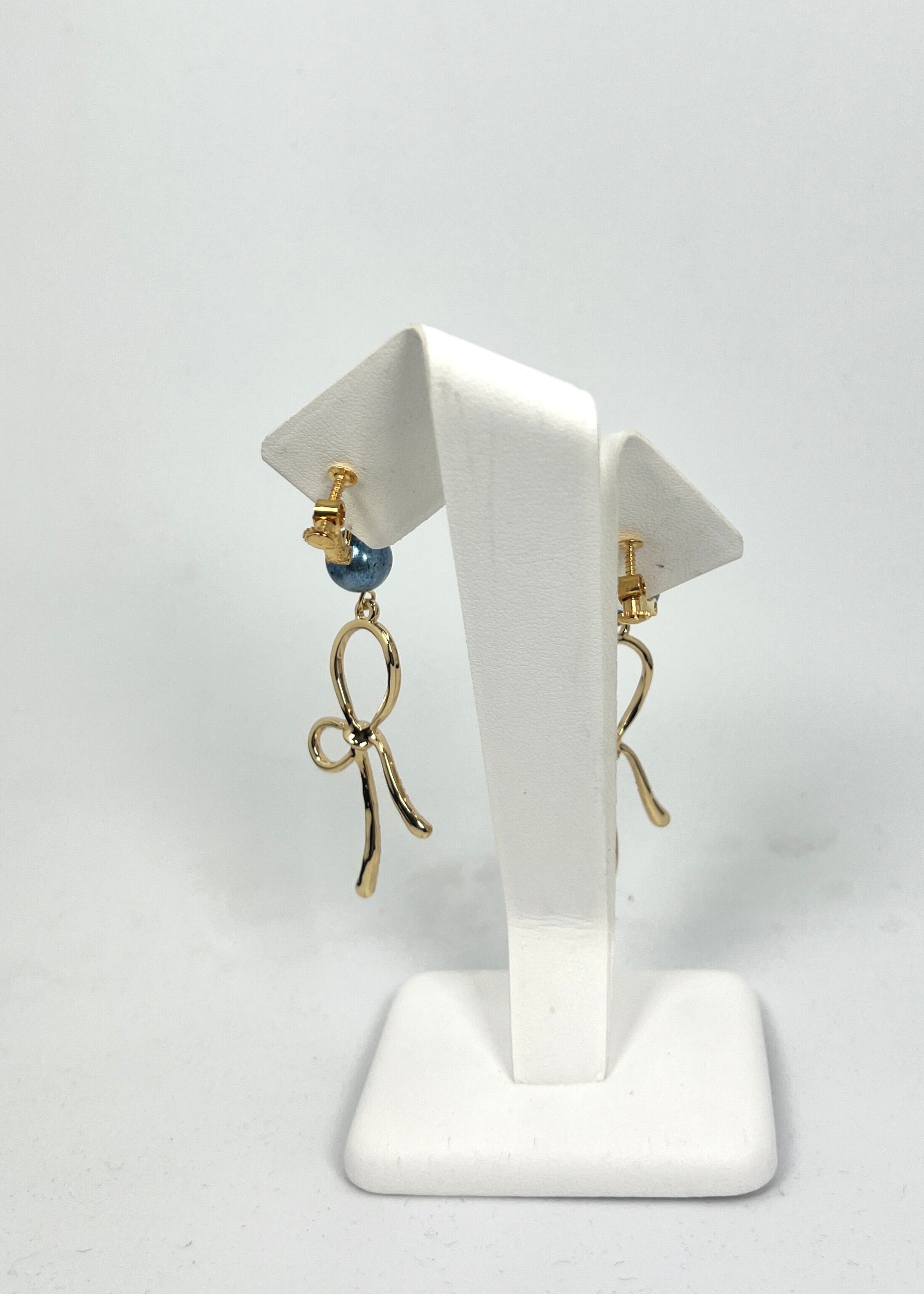 藍染 パール リボン チャーム付き イヤリング ピアス に変更可 jal103