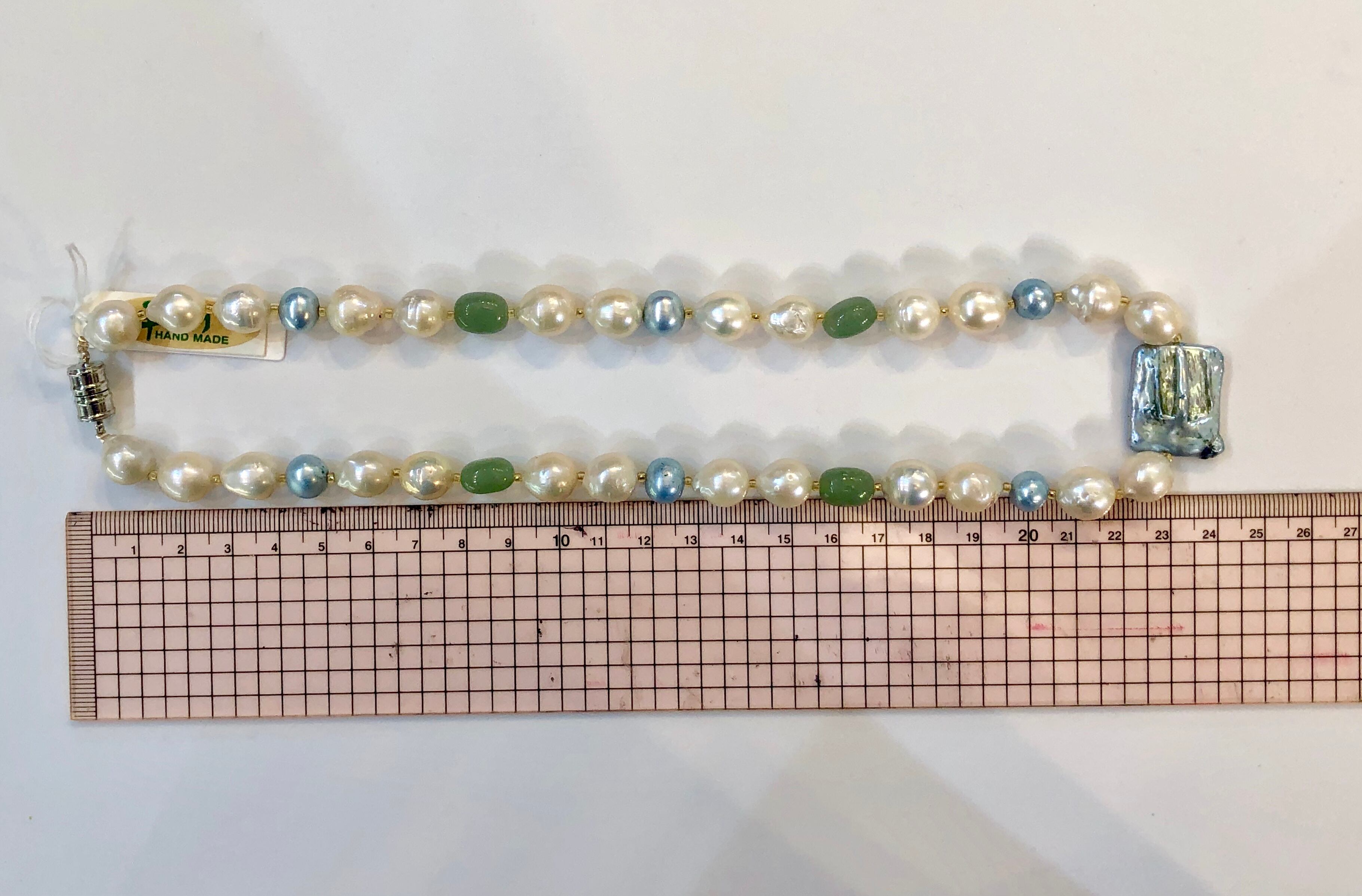 藍染をした藍パール、今回はSUMMER新作コレクションとして、アベンチュリン・淡水パールを組み合わせてみました。